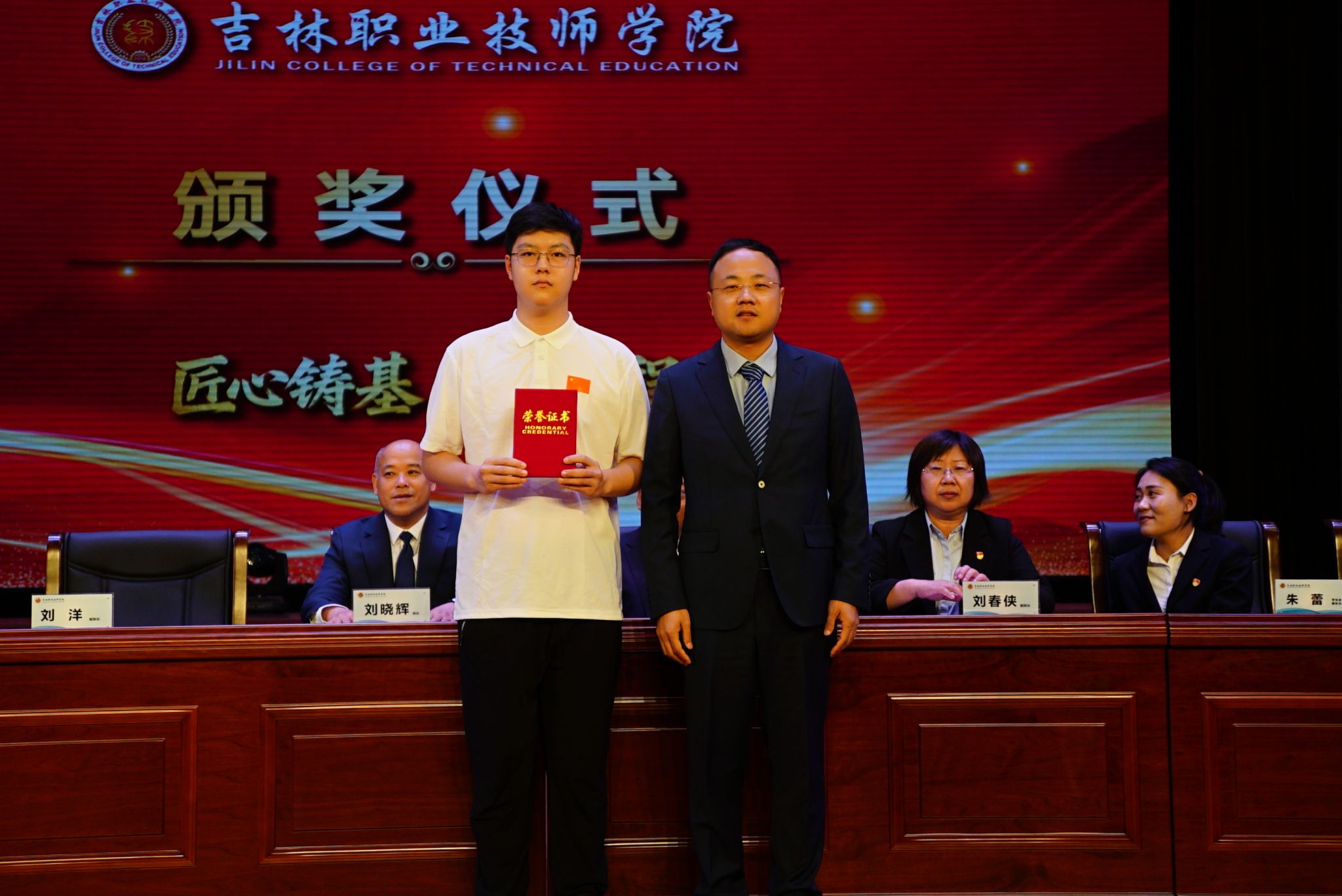 与会领导为“校级奖学金”学生代表颁奖