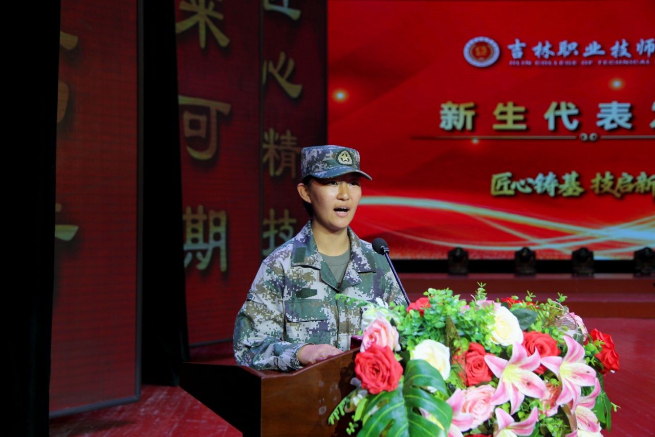 学生代表2025级中药学专业新生马子雯做大会发言,誓要以匠心铸成长根基,专注专业、精益求精;以技能为立足底气,珍惜平台、钻研技术。定会怀揣工匠精神,在实践中提升能力,成长为有技能、有担当的人才,为社会贡献力量。